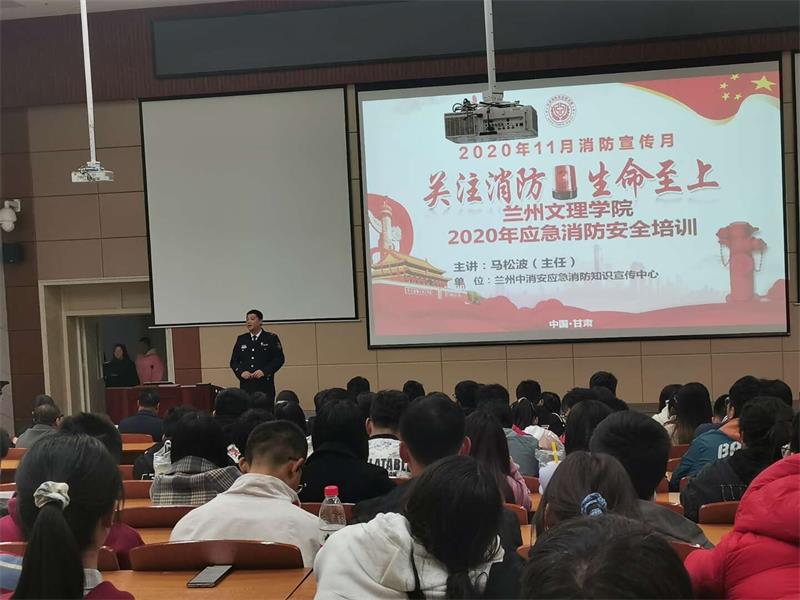 为营造良好的学校安全环境,普及各类安全、消防知识,进一步强化全校师生的安全防范意识,预防和减少各类火灾事故的发生,2020年11月9日下午,保卫处特聘请兰州中消安消防知识宣传中心马松波主任,在学校综合楼205阶梯教室举行了消防安全知识讲座。