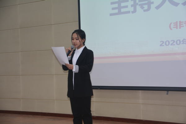 赛前,校学生会邀请耿海源、田超、李典宇同学为非专业组同学进行了培训。初赛中,选手们依次进行了自我介绍和指定稿件朗读两个环节的比拼。整场比赛选手们都表现得非常出色,同学们洋溢着青春的活力,展示着语言的魅力,飞扬着自信的风采。经过角逐,共有16名同学入围决赛,筛选出了一批普通话标准、具有一定主持人基本素质的选手进入决赛。