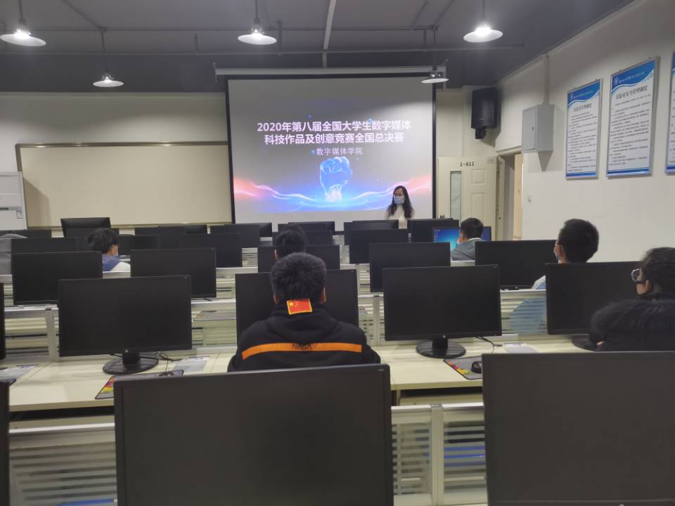 数字媒体学院于2020年11月14日早上9:00在南校区1-611机房积极组织,配合学生完成“2020年第八届全国大学生数字媒体科技作品及创意竞赛全国总决赛”线上答辩。2020年第八届全国大学生数字媒体科技作品及创意竞赛全国总决赛采取“线上线下相结合”的方式进行,进入决赛答辩环节的参赛作品由参赛团队在线展示与答辩,评审专家线下集中、分组评审,确保了全国总决赛的公平、公正、公开。本次比赛我院共有五件作品进入全国总决赛,分别安排在不同的小组进行在线答辩,各位参赛选手全程参与了本次比赛活动,数字媒体技术教研室主任李岚副教授、学科竞赛负责人刘瑒老师进行了组织并观摩。