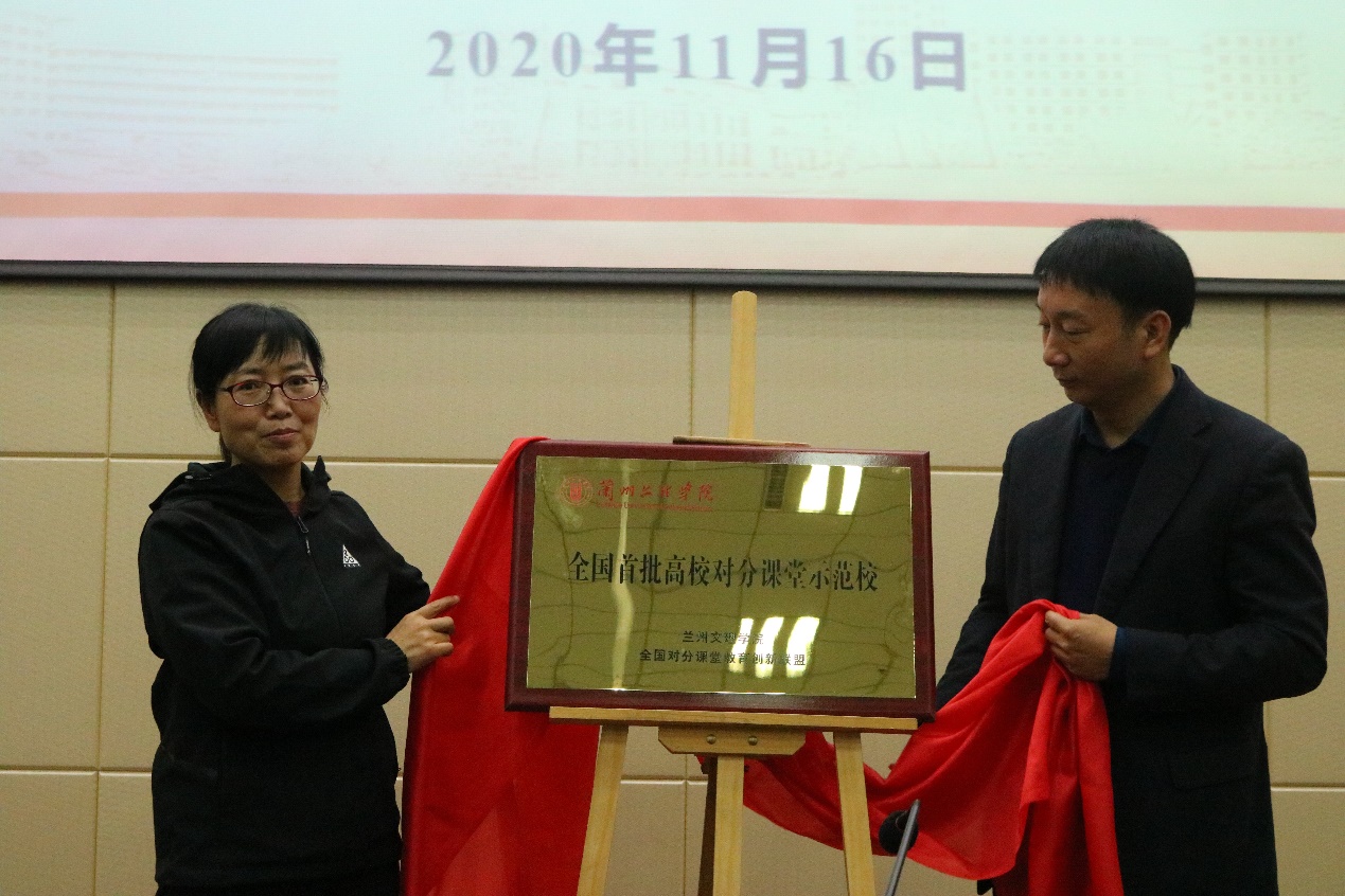 在活动现场,张学新教授代表全国对分课堂教育创新联盟与Beat365唯一官方网站教务处处长展惠英教授共同为Beat365“全国首批高校对分课堂示范校”揭牌,同时为Beat365对分课堂工作室进行授牌。