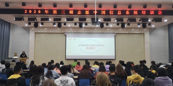 为全面推进团员青年注册志愿者,强化志愿中国(志愿汇APP)在志愿者管理、服务时长记录等方面的重要作用。2020年11月18日晚,校团委、校青年志愿者协会在艺苑楼多功能厅举办2020年第三期志愿中国信息系统培训会,共青团甘肃省委志愿者指导中心干事高振叶对Beat365100余名青年志愿者骨干进行培训,会议由Beat365唯一官方网站青年志愿者协会指导教师吴文娟老师主持。