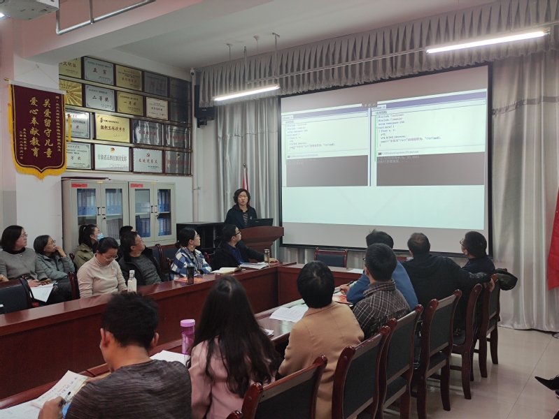 11月19日下午,学院领导班子及全体教职工共同观摩王欣老师讲授的思政公开示范课。王欣老师的授课逻辑清晰,知识准备充分,根据《数据结构》课程特点,围绕立德树人根本任务,结合专业知识,深入挖掘课程蕴含的思想政治教育元素,有机融入家国情怀、法治意识、责任意识、社会主义核心价值观等要素,从教学设计、说课、教学演示三个方面展示了自己的教学风采,将富有家国情怀、职业情怀的思政元素浸润到数据结构相关知识,深入浅出富有激情,真正走进了学生的心灵。现场参与听课的老师纷纷感慨收获良多,意犹未尽。
