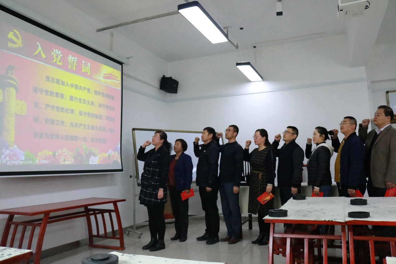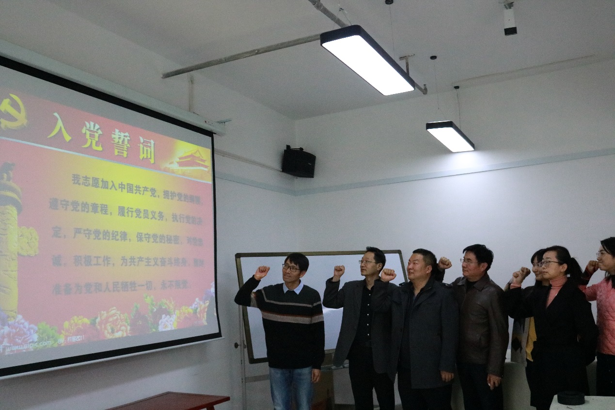活动中,教工第一党支部、教工第二党支部的支部书记分别带领各支部党员庄严宣读入党誓词:“我志愿加入中国共产党,拥护党的纲领,遵守党的章程,履行党员义务,执行党的决定,严守党的纪律,保守党的秘密,对党忠诚,积极工作,为共产主义奋斗终身,随时准备为党和人民牺牲一切,永不叛党。”