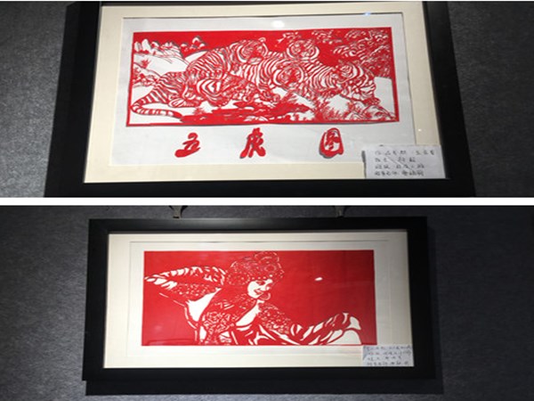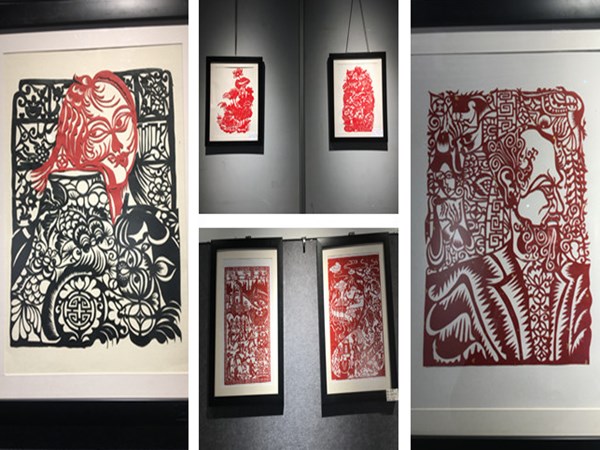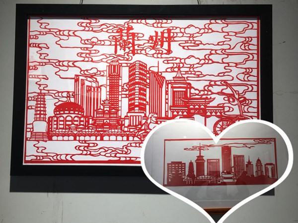 此次展览共展出剪纸作品50余幅,一部分作品以甘肃标志性城市建筑中山桥、白塔山等为主题,适当加入有代表性的文化元素莫高窟、飞天、牛肉面等元素,通过PS对以上图案进行设计加工,形成较有特色的剪纸作品。另外一部分作品以民间吉祥团花或对称图案为主要题材,通过剪纸的形式把皮影、戏曲人物、经典工笔画局部元素作为创作素材,丰富了剪纸艺术的表现形式。