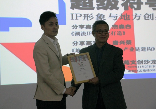 活动首先由王克太副校长为白松先生颁发了文创科技园创新创业导师聘书,白松艺名杰森白,著名潮流动漫艺术家、卡通形象设计师;故宫文创首个动漫专家顾问;国漫F5组组员;为多家单位和企业设计IP形象,代表作有江小白漫画、潮流玩具“摇头驴”、弹弹熊、鹿格格、朕的朝代等。白老师表示,今后将持续关注Beat365文创事业,在IP形象设计、文创产品开发、文创创业等方面持续给予帮助和辅导,助力Beat365文创事业更上一层楼。