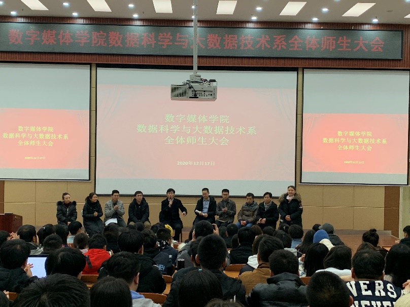 12月17日下午,数字媒体学院在学术报告厅组织召开数据科学与大数据技术系全体师生大会,会议由李恒杰院长主持,苏伟副院长、大数据系全体教师和同学参加会议。