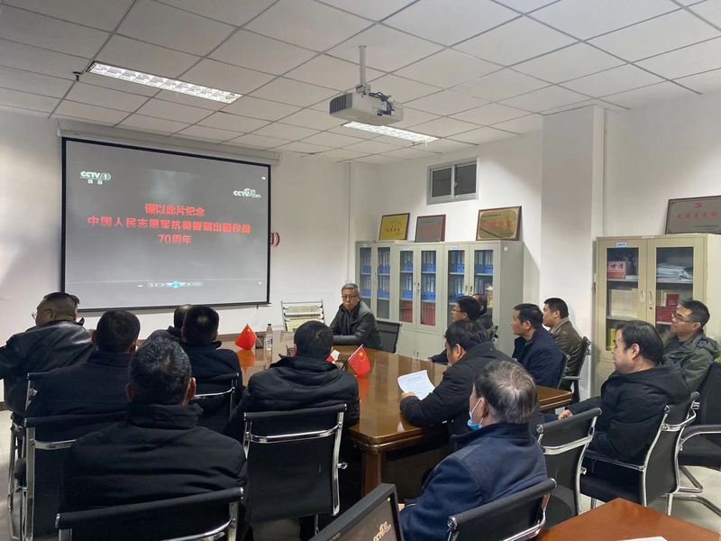 12月19日下午,为深入贯彻落实习近平总书记在纪念中国人民志愿军抗美援朝出国作战70周年大会上的重要讲话精神,大力弘扬伟大的抗美援朝精神,深刻缅怀英雄先烈的不朽功勋,加强新时代爱国主义教育,教育引导教职工厚植爱国主义情怀,后勤管理处组织全体职工观看大型电视纪录片《为了和平》。