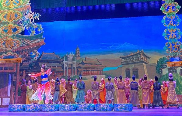 《丝路花雨》取材于敦煌莫高窟壁画艺术,以举世闻名的丝绸之路和敦煌壁画为素材,歌颂了画工神笔张和女儿英娘的光辉艺术形象,描述了他们的悲欢离合以及与波斯商人伊努斯之间的纯洁友谊,再现了丝绸之路上各民族交流互惠的景象。“丝路绵绵传友谊,花雨缤纷舞彩虹”。敦煌魅力绵延千年,一曲倾情,一舞倾城,“舞势随风散复收,歌声似磬韵还幽”。在这场美妙绝伦的舞剧中,同学们一睹丝雨芳华,近距离地领略了敦煌艺术的迷人魅力,感受到丝路文化的精彩璀璨。