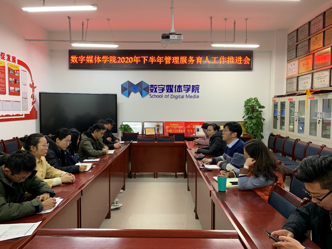 12月21日上午,数字媒体学院召开2020年下半年管理服务育人工作推进会,会议由院长李恒杰主持,党总支书记陈小琴、副院长黄珍、全体行政座班人员及实验室人员参加会议。