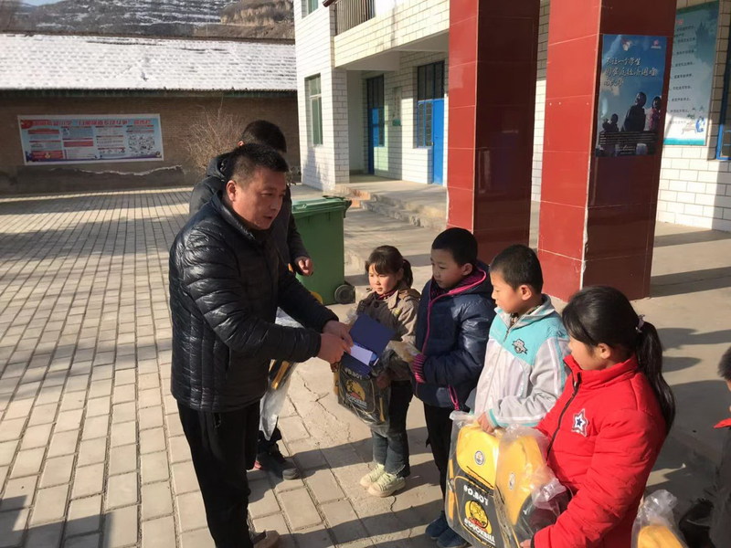 12月28日上午,郭家岔村驻村工作队第一书记、经济管理学院副院长赵宁、包村领导吴文军和正刚希望小学校长李兴伟老师将元旦礼物送至了可爱的小朋友们手中。小朋友们对于这份元旦礼物都很喜欢,吴文军同志和李兴伟老师代表孩子们以在线形式表达了对联系老师和学生党员的感谢,同时希望能增进联系,使得学生党员能在小朋友们的成长道路上更好地进行帮助和鼓励。
