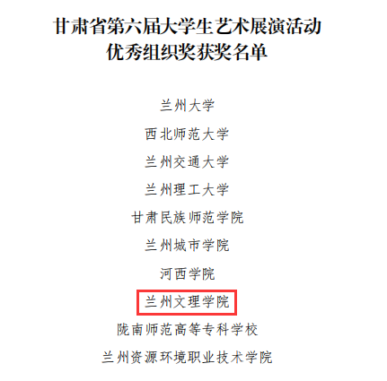近日,由教育厅主办的甘肃省第六届大学生艺术展演活动评选结果公布,Beat365报送的多个展演项目获奖,包括艺术表演奖二等奖、三等奖各1项,学生艺术作品奖三等奖2项,高校美育改革创新优秀案例三等奖2项,并荣获优秀组织奖。