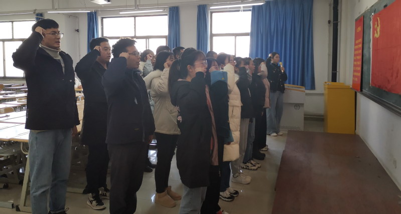 宣誓仪式最后,王迎春提出几点建议和要求。要求党员同志要通过组织生活活动、“学习强国”等学习平台跟进学习习近平新时代中国特色社会主义思想,要主动参加党组织的各项活动,要加强党性修养,履行入党誓言,在思想政治上与党中央保持高度一致。要通过自身努力自觉发挥好党员的带头示范作用,在把自己工作做好的同时,积极帮助在学习和生活中有困难的同学,像爱护自己的眼睛一样维护党员形象。王书记强调,临近期末考试和毕业班实习,希望大家遵守考场纪律,考出水平;希望外出实习的同学能遵守学校和实习单位的相关规定,在疫情期间做好安全防护工作。