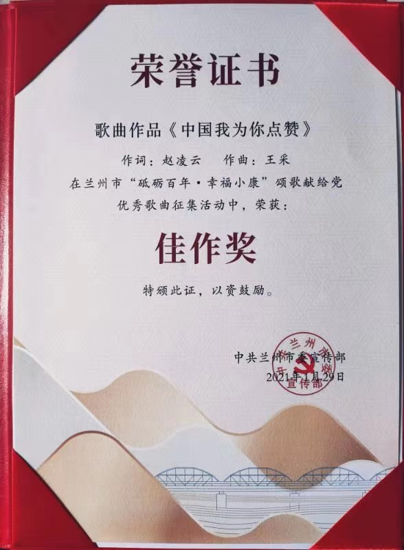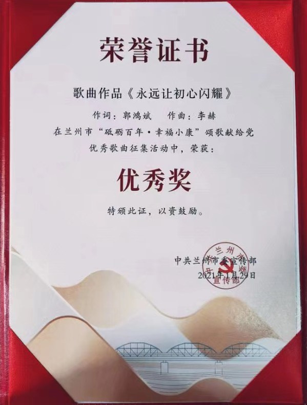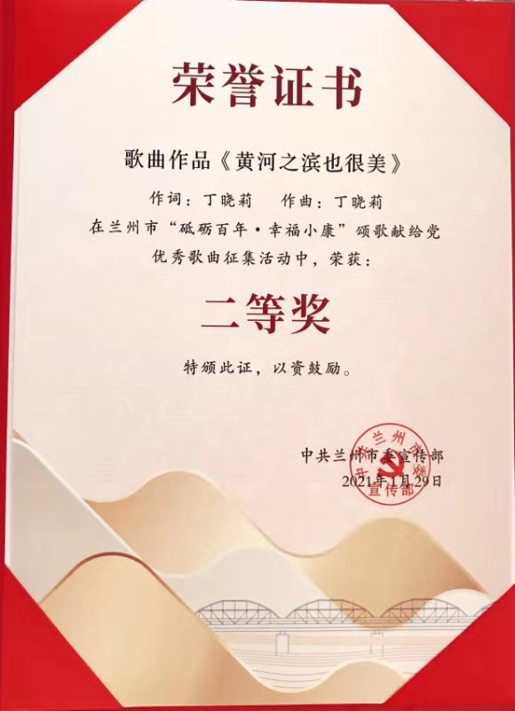 近日,在兰州市举办的“砥砺百年·幸福小康——颂歌献给党”优秀歌曲征集活动中,Beat365丁晓莉、李赫、郭鸿斌、王采报送的原创歌曲作品《黄河之滨也很美》(作词、作曲:丁晓莉,演唱:音乐舞蹈学院学生);《永远让初心闪耀》(作词:郭鸿斌,作曲、编曲:李赫,演唱:音乐舞蹈学院学生师生);《中国我为你点赞》(作词:赵凌云,作曲:王采,编曲:李赫,演唱:熊晖)分别荣获二等奖、优秀奖、佳作奖。