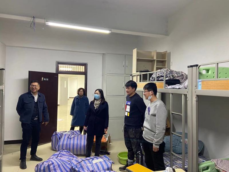 3月6日晚,党委委员、副校长刘畅一行深入新建公寓和改建公寓宿舍楼,走访看望学生搬迁后的入住情况。