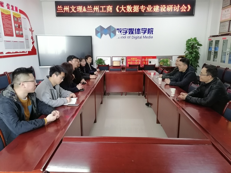 为加强专业建设,提高人才培养质量,数字媒体学院于3月7日下午,在学院会议室召开了“数字媒体学院与兰州工商学院信息工程系数据科学与大数据技术专业建设研讨会”,兰州工商学院信息工程系主任孙力、信息工程系副主任杨光,信息中心主任叶得学等三位老师参加研讨;数字媒体学院院长李恒杰教授、黄珍副院长、实验中心主任洪晓芬、创业就业办主任姚林、实验中心副主任刘洁以及大数据专业骨干教师参加此次研讨会。