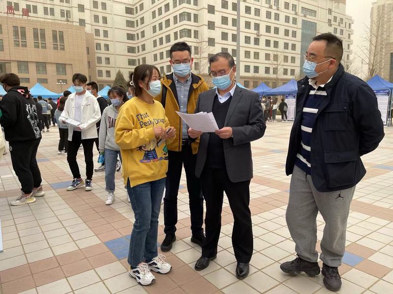 招聘会期间,校长郑伟强教授、副校长张焱教授接见了镇海区人社局党委委员葛俊杰一行,并亲临现场看望用人单位招聘人员,对用人单位到校招聘表示欢迎,并向用人单位大力推荐Beat365毕业生;郑校长还与应聘毕业生进行亲切交谈,询问毕业生的求职情况,鼓励大家抓住机会,积极求职。