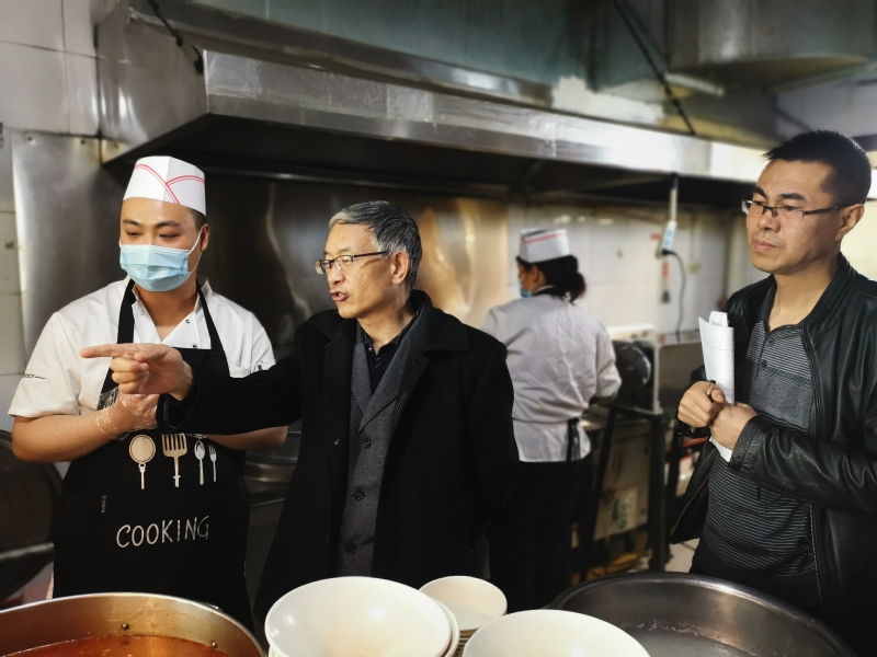 3月23日上午,李敏骞副校长在后勤管理处处长凌毅、党总支书记李耀荣和饮食管理科负责人陪同下,检查学校食堂伙食供应、饭菜质量及伙食安全卫生管理工作。