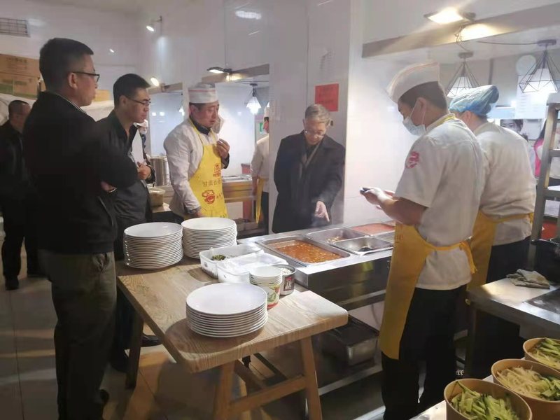 李敏骞查看了思源楼一楼、二楼、三楼,学生一食堂、学生二食堂、聚福园、清真餐厅等食堂窗口,详细了解食品原料、加工程序、餐饮清洗消毒、食品留样、食堂环境和制度保障等情况。随后检查了各个正在营业的窗口,询问了解各类窗口的菜品、菜价等,并与部分学生、食堂员工进行沟通交流,倾听他们对食堂伙食管理工作的意见和建议。