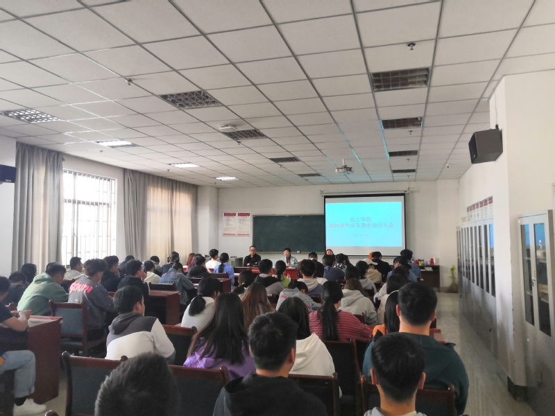 为进一步做好2021届毕业生就业工作,让同学们了解疫情防控常态化下的就业形势,把握就业机会,树立正确的就业观和择业观,3月23日中午12点20分,化工学院在1-104召开2021届毕业生就业动员会,化工学院副院长王尹杉、毕业班班主任杨全录、魏晓莉、陈艺溶、辅导员李凯青以及本专科毕业班在校同学参加了会议。
