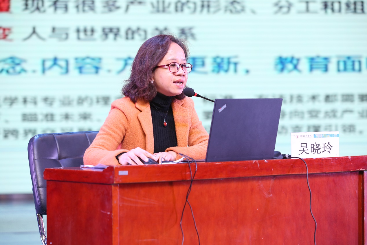 本次培训会邀请国家级一流专业建设点、一流课程负责人美术与设计学院院长吴晓玲教授作教育部“双万计划”建设与申报经验分享。吴晓玲从一流专业建设点和一流课程“双万计划”的工作目标、主要任务、建设原则、年度安排及要求等方面全面解析了教育部“双万计划”申报及建设要求。吴晓玲还通过个人申报经历提出了建议:要认真学习系列申报文件精神,吃准吃透一流专业建设内涵要求;申报材料要按要求反复认真打磨、凝练特色,丰富专业内涵,突出建设成效,确保申报材料脱颖而出。