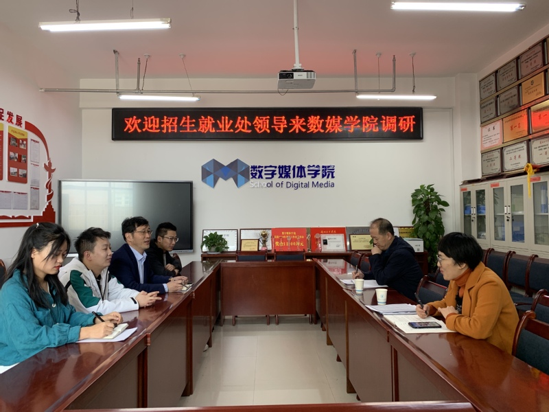 招就处处长王宏首先对今年的招生及就业工作做了介绍,对长期以来学院给予招生工作的支持表示感谢,希望学院继续做好充足的学科宣讲工作。他对数媒学院招生就业现状、困境以及如何改善等问题进行了针对性剖析,指出数媒学院各专业现在面临的招生就业形势比较乐观,并对数媒学院目前的就业率表示肯定,希望学院在新的一年有新的突破。此外,招就处也正在在落实给学生早点上就业形势政策课这项工作。随后,马红老师提出今年学院做好就业系统和学信网两个系统的完善工作,确保两个系统的信息准确一致。