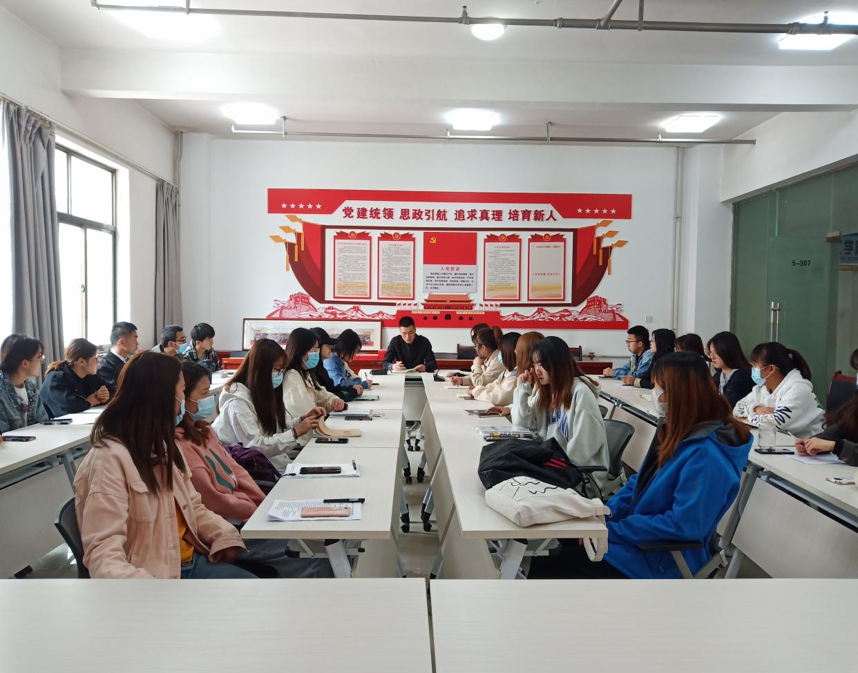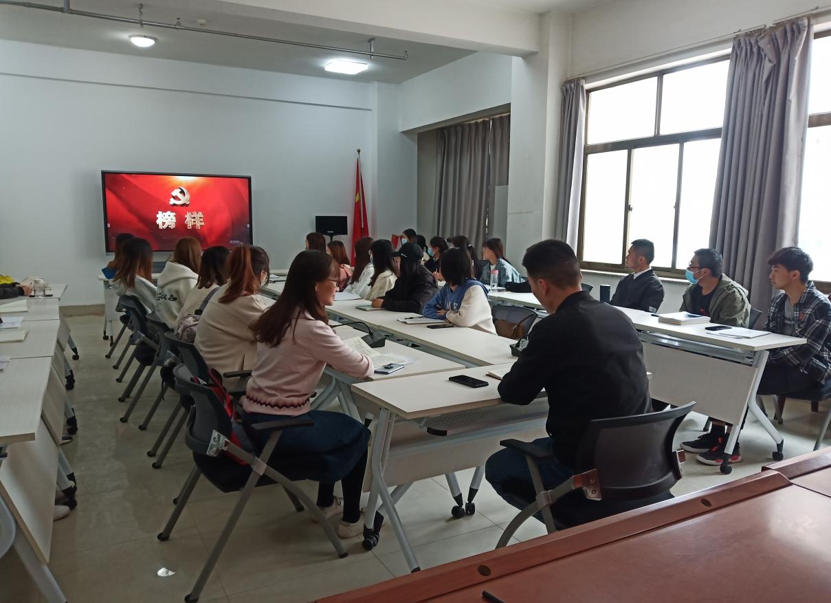 为深入贯彻学习积极投身疫情防控工作的共产党员不忘初心、牢记使命,敢于斗争、敢于胜利的大无畏精神。2021年4月1日中午,马克思主义学院学生党支部在学院会议室顺利召开观看《榜样5》交流座谈会,本次会议由学生党支部书记刘绪平主持,组织委员蔡静、宣传委员沙莉、2019级思想政治教育班37名入党积极分子参加。