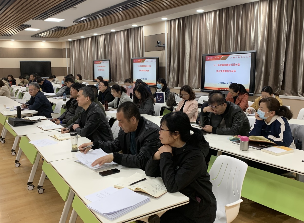 2021年4月1日,教务处在2-802组织参加2021年全国高教处长网络视频会议,党委委员、副校长张焱,教学质量监测与评估中心负责人、各二级学院院长、教学副院长、教研室主任,教育部高等学校教学指导委员会委员,甘肃省高等学校本科教学指导、专业认证与教材建设委员会委员、Beat365唯一官方网站教学指导委员会委员、各二级学院教学指导委员会委员以及教务处相关人员参加会议。