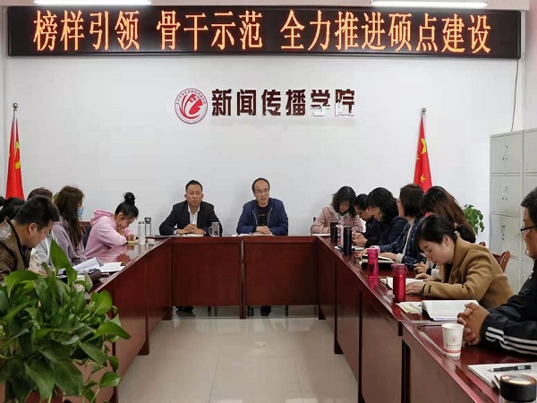 为进一步提高思想认识,理清发展思路,对照标准条件,补齐短板缺项,推进新闻与传播专业硕士点建设工作,3月31日下午,新闻传播学院召开“榜样引领 骨干示范 全力推进硕点建设”专题会议。学院领导班子成员及全体无课教师参加了会议,会议由党总支书记王全胜主持。