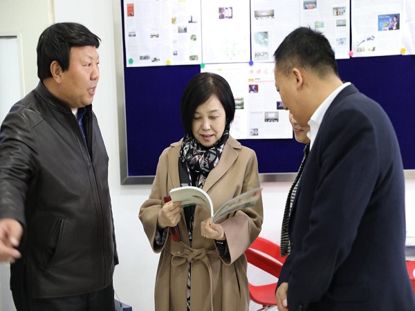 在数字出版实验室,王晓红处长详细翻阅了数字出版班的学生编辑整理成册的图书,并表示了高度赞赏。