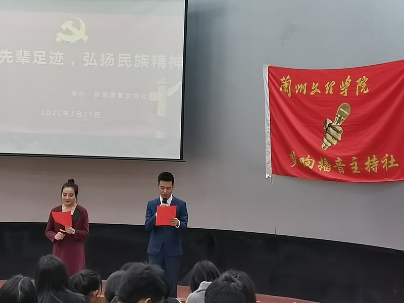 3月29日,梦响播音主持社开展“踏寻先辈足迹,弘扬民族精神”主题朗诵,通过诵读经典的形式了解党史故事、学习党史知识。