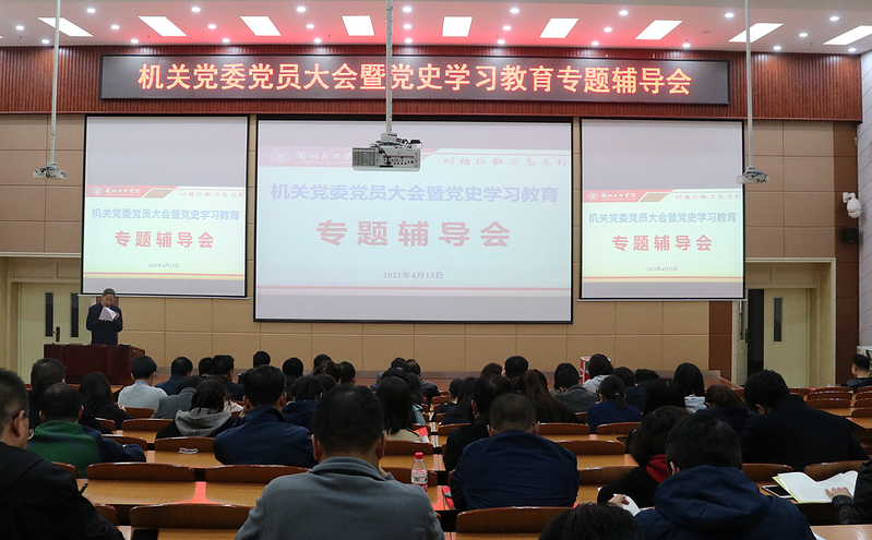 4月13日下午,机关党委在综合楼205教室召开机关党委党员大会暨党史学习教育宣讲会,邀请学校党史学习教育宣讲团成员、“四史”教育中心、马克思主义学院费翔教授以《中国共产党为什么能?—中国共产党的辉煌历史》为题,为机关党员做党史学习教育专题辅导。机关党委全体党员参加会议,会议由机关党委书记王金平主持。