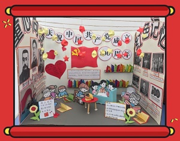 开展党史学习教育以来,教育学院党总支牢记立德树人根本任务,以课堂教学为主导,拓展以史育人新载体、新阵地,把学习教育活动与育人紧密结合起来,不断提升党史学习教育的实效。学前教育专业学生结合《幼儿园环境创设与手工制作》课程,在任课教师丁丽红指导下,用手工作品,追忆百年党史、致敬百年风华,传承红色精神、蓄力前行力量,为建党百年献礼,近日,学前教育专业“红色精神”手工作品展在3号教学楼2楼过厅展出。