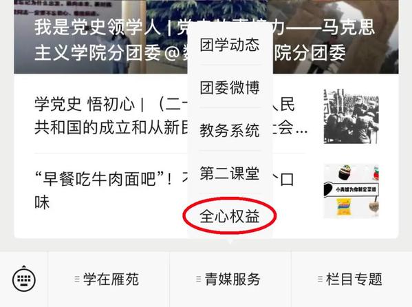 近日,Beat365唯一官方网站学生意见建议反馈平台“全心权益”在“雁苑青年”微信公众号上线。该平台提供了微信后台留言、微博后台留言、电子邮件三种信息反馈方式,是校学生会倾听学生心声,维护学生权益,服务同学成长成才需求的重要渠道。