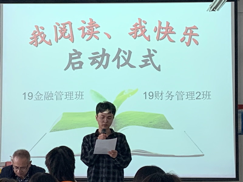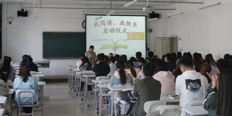 4月16日,经济管理学院在3-604教室召开2019财务管理二班和2019金融管理班“我悦读,我快乐”阅读活动启动仪式。学院党总支书记王迎春和两个班级近90名学生参加活动,两班班主任贾欢欢主持启动仪式。