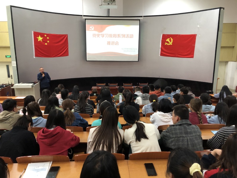 4月21日晚,经济管理学院在综合楼5-401阶梯教室召开党史学习教育系列活动推进会,各支部在校学生党员、全体党员发展对象、入党积极分子培训班组长;分团委副书记、学生会主席、学院大学生社团主要负责人;各班班长、团支书及各学生支部委员和学生助理等200余人参加。