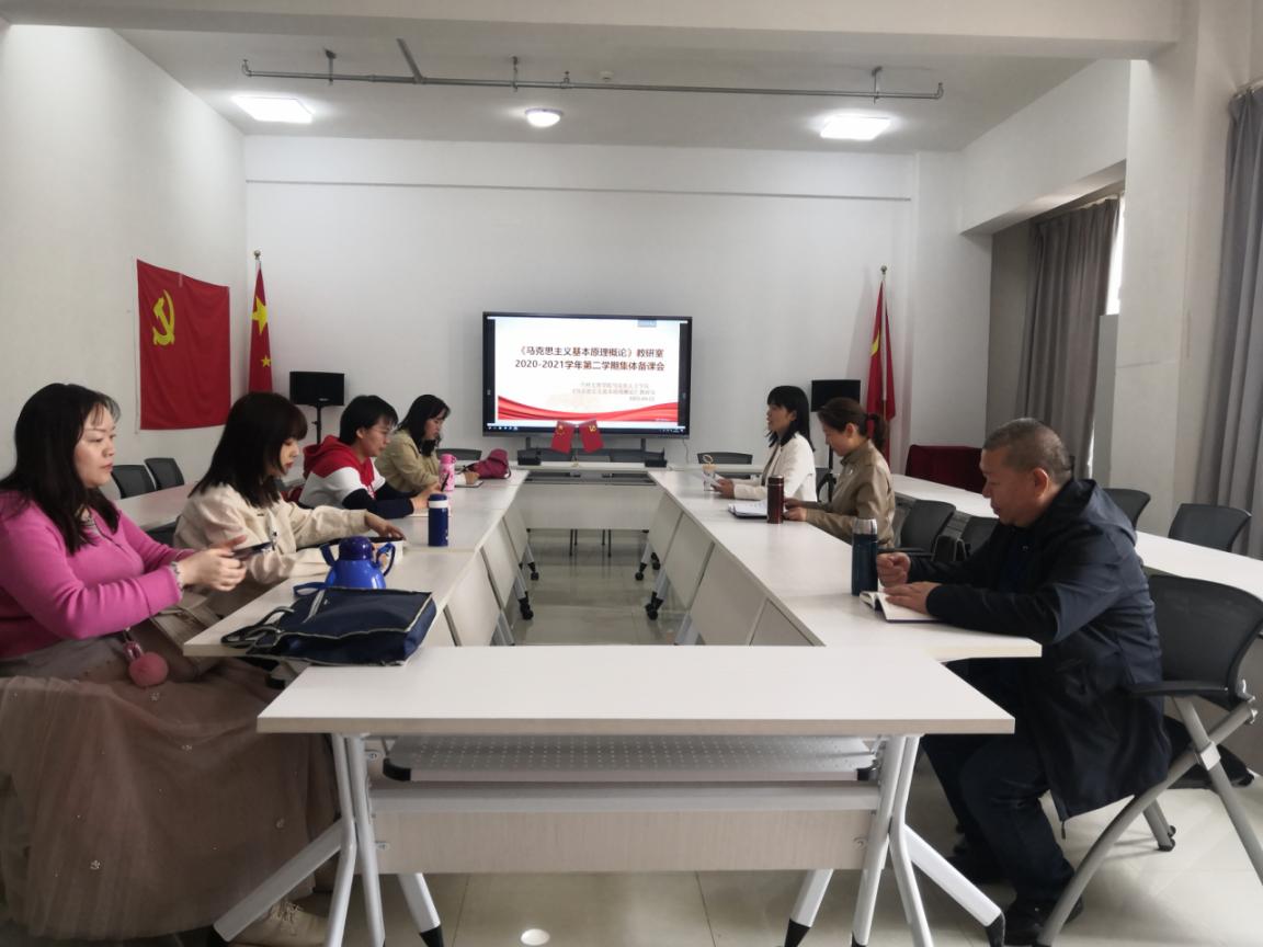 2021年4月22日下午,马克思主义学院原理课教研室在学院会议室举行了本学期第二次线下集体备课会,本次集体备课会由原理课教研室主任蔡静老师主持。