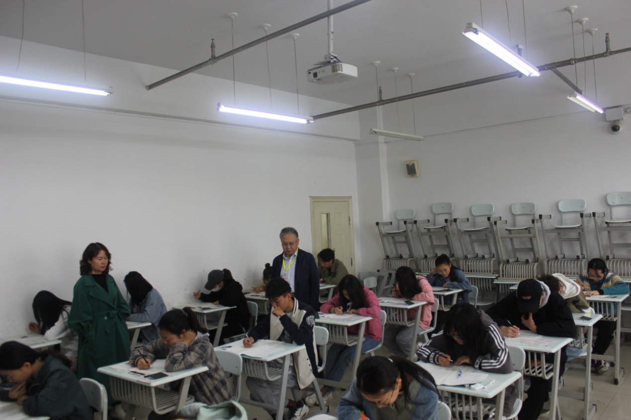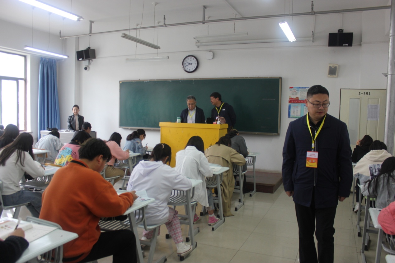 4月24日(星期六)上午,2021年度全国大学生英语竞赛(NECCS)初赛在Beat365举行。本次竞赛Beat365共有500余名各专业本、专科学生报名参加B、C、D不同类别的竞赛,Beat365设17个考场。在外语学院精心安排,学校教务处及相关部门的大力支持下,本次竞赛井然有序,顺利完成。副校长张焱、教务处副处长苑毅一行在外语学院院领导的陪同下对考场进行了巡视,保证了赛事的顺利进行。