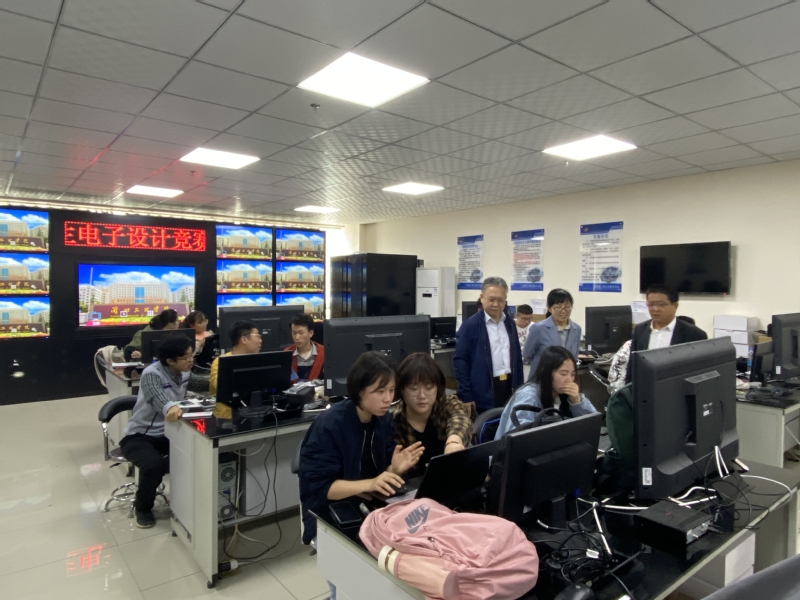 全国电子设计竞赛校级选拔大赛由教务处主办,传媒工程学院承办。传媒工程学院根据学校相关要求,积极动员组织学生参加,这次大赛共有28支参赛队共计84名学生参加,各参赛队从备选题目中任选一题目完成设计、电路焊接及测试,并撰写设计报告。4月22日上午十点,副校长张焱在教务处处长展惠英、传媒工程学院副院长孔繁庭陪同下到竞赛现场观摩指导,副校长张焱认真观看了各参赛队的选题及初步设计方案,并和参赛同学进行了交流,给出了指导意见和建议。