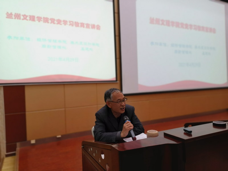 4月29日中午,校党委委员、副校长李敏骞教授在综合楼5-205阶梯教室,作了题为“站在中国三千年历史的高度看百年党史的成就”的党史学习教育辅导报告。经济管理学院、美术与设计学院、后勤管理处、基建处班子成员、学生党支部委员、师生代表及2021年春季入党积极分子培训班学员等200余人参加报告会。