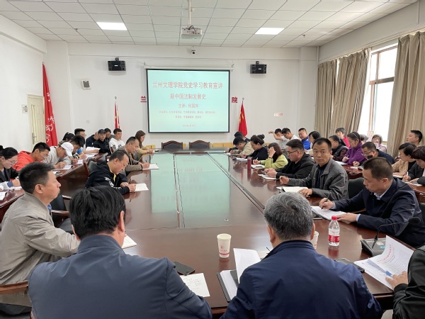 按照校党史学习教育领导小组工作部署安排,4月29日,学校党史学习教育宣讲团成员、马克思主义学院副教授何国萍在艺术职业学院会议室讲授“新中国法治发展史”专题讲座,副校长张焱出席宣讲会,社会体育学院全体师生党员及艺术职业学院、教务处、招生就业处、科技处、学报编辑部、图书馆等7个部门党员共计60余人听讲。宣讲会由社会体育学院党总支书记陆克珠主持。