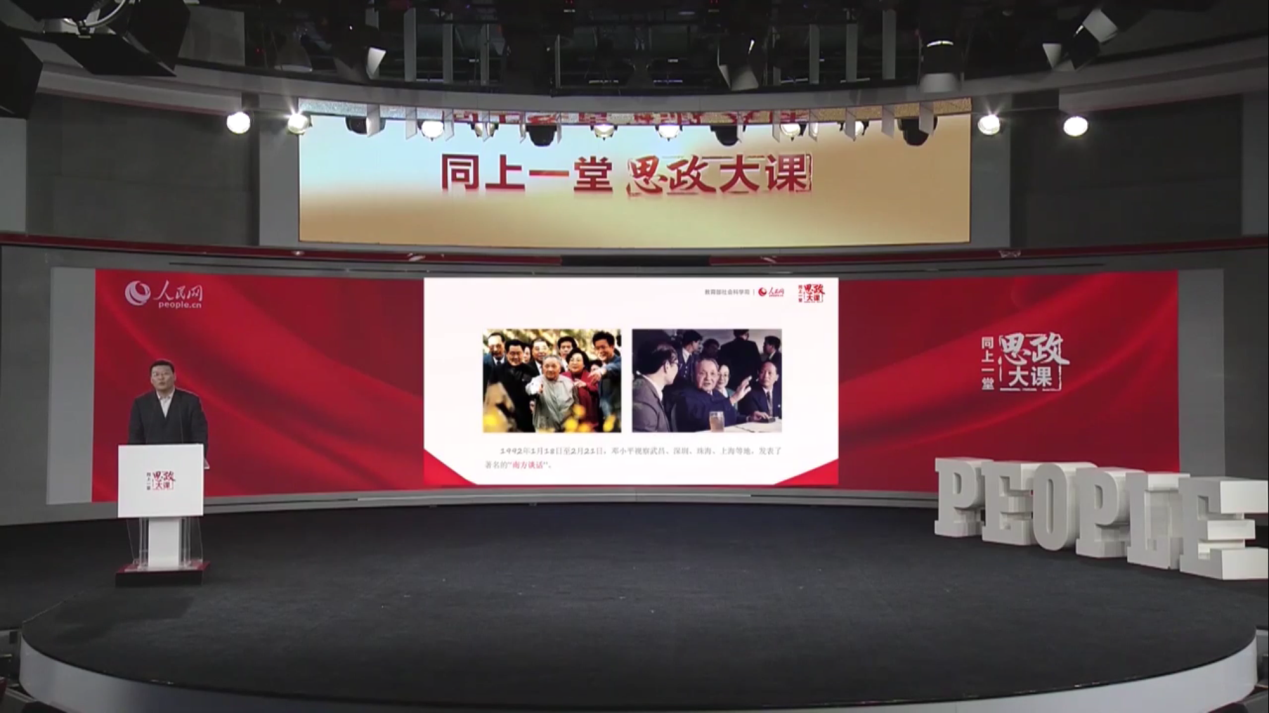 为深入贯彻落实习近平总书记关于深化思想政治理论课改革创新和“大思政课”的重要指示批示精神,全面落实习近平总书记在党史学习教育动员大会上的重要讲话精神和《中共中央关于在全党开展党史学习教育的通知》的部署安排,教育部社科司与人民网联合举办了“同上‘四史’思政大课”活动。5月15日下午,马克思主义学院中国近现代史纲要教研室、“四史”教研中心积极动员并认真组织教师和在校学生观看了“同上改革开放史思政大课”直播课程。