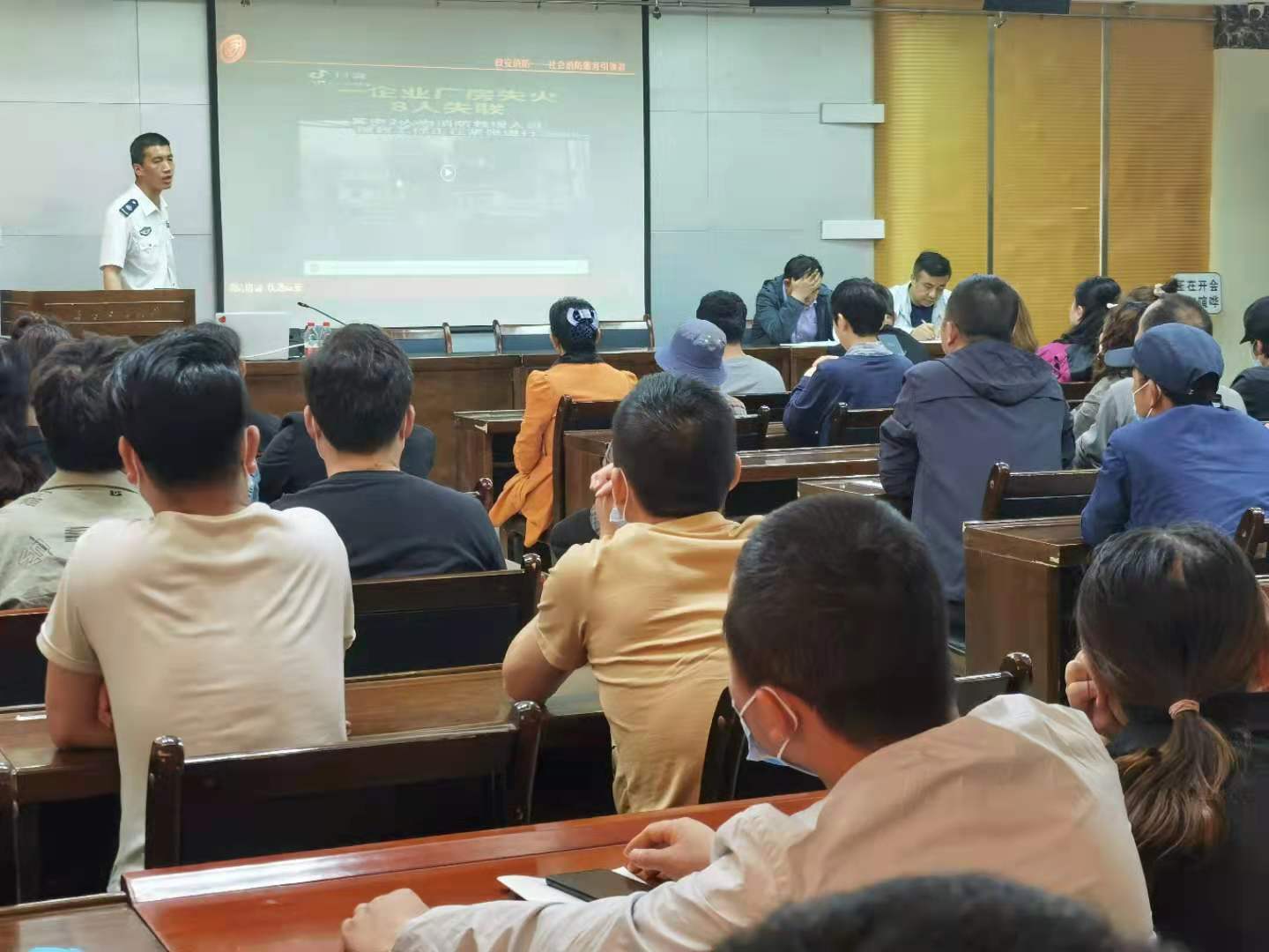 来自兰州政安防火知识宣传中心的漆教官通过照片、视频、演示、与大家互动的方式,从讲解消防法规知识、剖析典型火灾案例、分析讲解如何有效预防大灾事故的发生、如何正确报火警、怎样正确扑救初起火灾、常见火灾的特点和扑救办法、灭火器的性能、使用范围、正确操作方法和维护保养、火场中如何正确逃生自救和互助互救等方面给大家上了一堂生动、震撼人心的消防安全宣传教育培训课。
