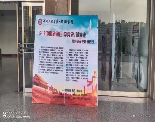 2021年5月19日,旅游学会在思源楼小广场搭建主题展板进行中国旅游日的宣传,安排相关人员到现场进行讲解。并于晚上七点半在学术报告厅举办中国旅游日主题讲座。