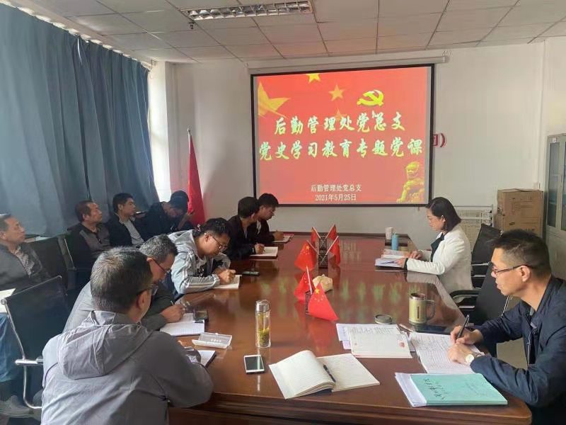 根据学校党史学习教育领导小组办公室《关于结合“三会一课”、主题党日抓好党史学习教育的通知》精神,按照后勤管理处党总支党史学习实施方案及学习教育计划安排,5月25日下午,后勤管理处党总支书记李耀荣围绕“社会主义革命和建设历史时期”专题讲党课,后勤处全体职工、全体党员参加了党课学习。