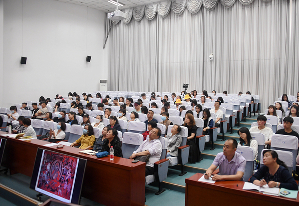 赵晓星研究馆员以《沙漠中的美术馆:莫高窟》为题,从严肃的敦煌、亲切的敦煌、犀利酸爽的敦煌三个维度为大家解读了一个多样的敦煌。赵晓星通过一幅幅精美的石窟壁画、一座座生动的石窟造像,生动讲解了不同时期莫高窟的历史与艺术、敦煌壁画中的古代社会生活和风趣幽默的另类敦煌壁画,让现场师生领略了世界文化遗产莫高窟独特的艺术之美。报告会将中国优秀传统文化趣味化、通俗化、活泼化、年轻化的表达,引发了师生的强烈共鸣,提高了师生对敦煌文化艺术的理解和认识,增强了师生的民族自豪感和文化自信心。
