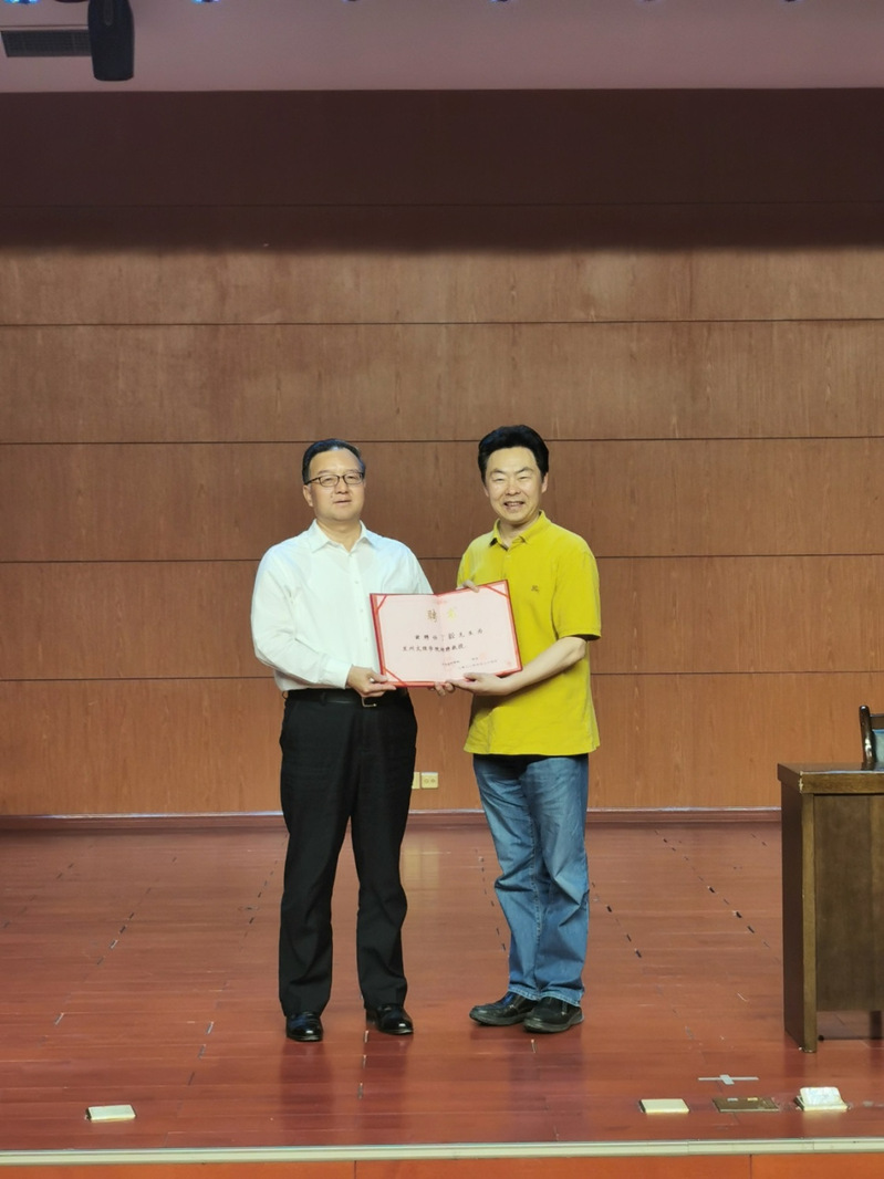 Beat365唯一官方网站校长郑伟强教授为丁毅教授颁发Beat365特聘教授聘书。