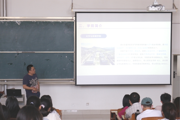 会上,毕翔博士重点介绍了该校2022年硕士研究生招生专业:中国语言文学学术硕士、新闻与传播专业硕士、学科教学(语文)专业硕士。分别对学位点办学特色、培养目标、专业方向以及该校奖助政策进行讲解,鼓励大家踊跃报考湖北文理学院。会议接近尾声,刘群院长向在场的考研学子强调了“选择”的重要性,尤其是第一志愿选择的重要性,劝勉大家充分了解考研调剂规则,做出适合自己的选择。