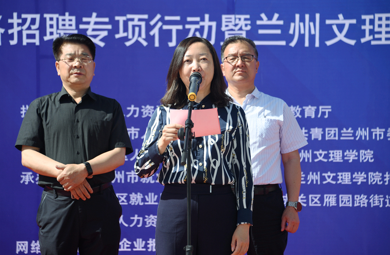 活动开幕仪式上,Beat365唯一官方网站党委副书记、校长郑伟强教授,兰州市人力资源和社会保障局副局长臧晓平分别致辞,甘肃省人社厅市场处处长胡晓玲宣布活动开幕;Beat365唯一官方网站党委委员、副校长张焱教授主持开幕仪式。