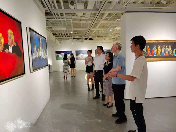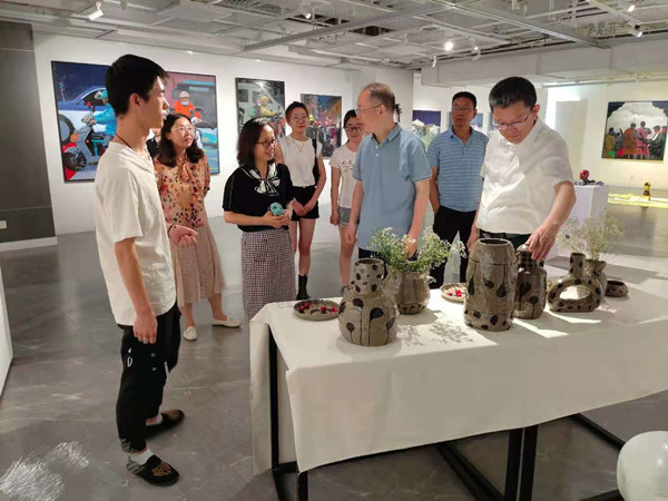 在观展过程中,普登学对美术与设计学院近年来的办学方向给予肯定,并对展览后期作品的整理收集、宣传推介、市场转化提出了意见建议。