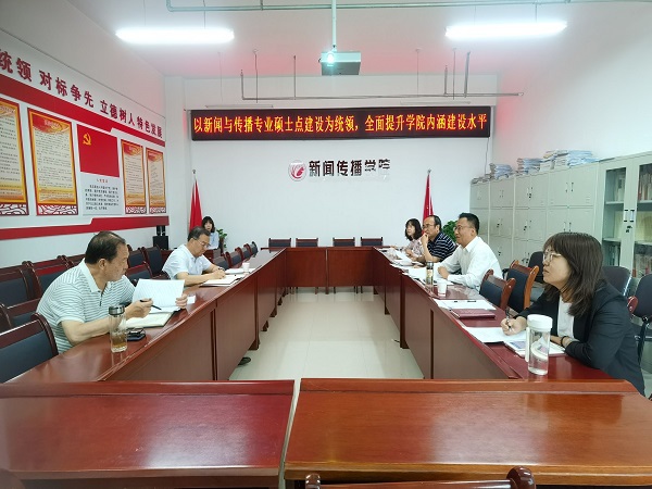 6月16日上午,党委副书记、校长郑伟强,党委委员、发展规划处处长薛怀庆及发规处工作人员到新闻传播学院就硕士点建设工作推进情况进行调研。新闻传播学院领导班子成员、专业负责人、教研室主任、办公室主任及工作人员参加了会议。新闻传播学院党总支书记王全胜主持会议。